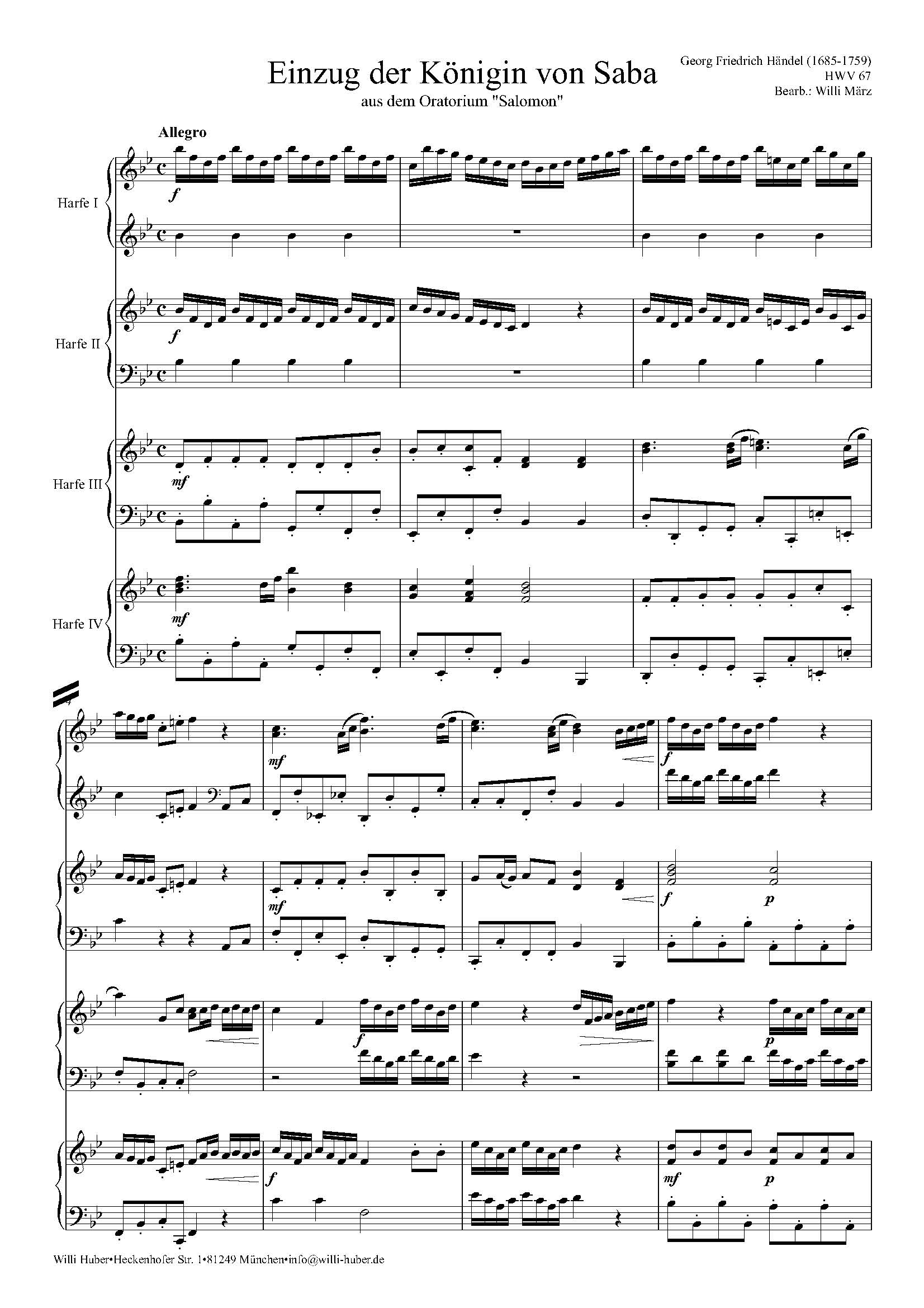 Bearbeitungen für Harfenquartett